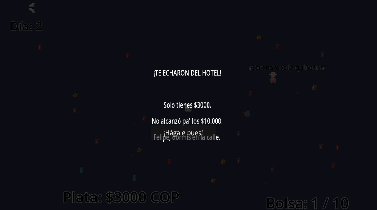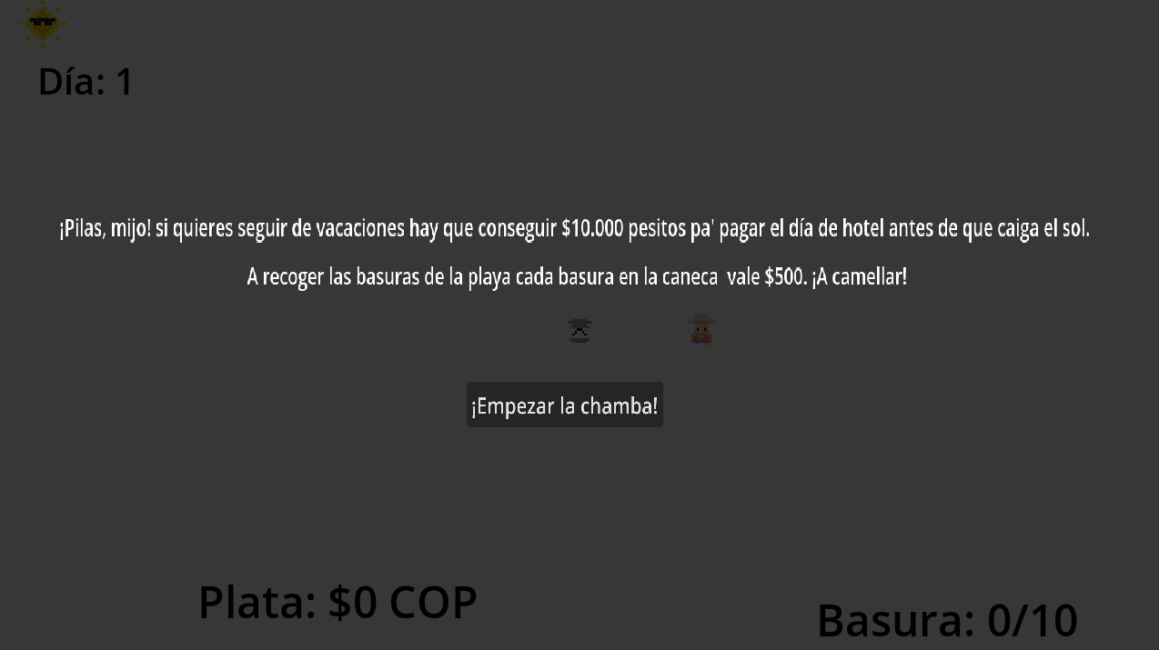 ¿Llegaste a la playa pero la billetera se quedó en el bus? ¡Bienvenido al verdadero descanso colombiano! En este arcade de supervivencia económica, las vacaciones se convirtieron en camello. Para no dormir en la arena, deberás limpiar la playa y pagar una cuota diaria de $10.000 COP al hotel.